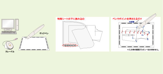 「コードレスデジペン」と「特殊なシート」を使って入力する、小スペース型の簡易入力装置です。